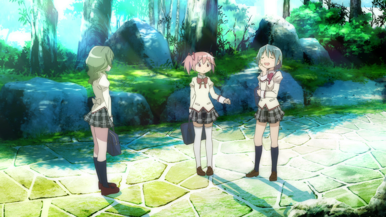 Kyubey a questo punto offre loro la possibilità di esprimere un qualsiasi desiderio in cambio della possibilità di diventare maghe e combattere le streghe. è l'incontro che potrebbe cambiare il loro destino.
