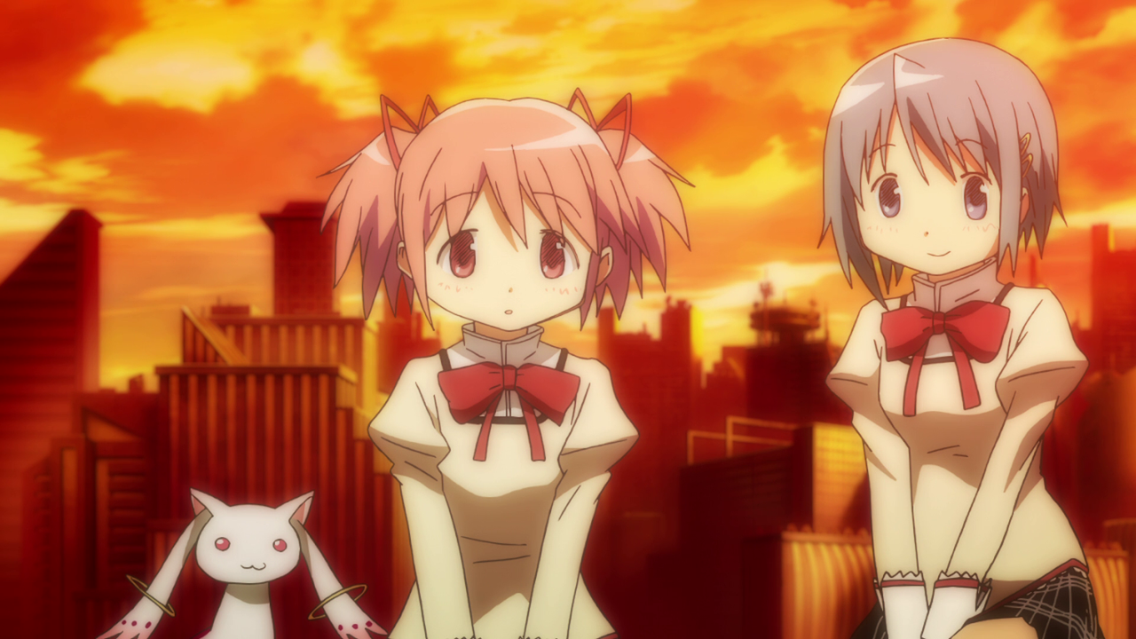 Madoka Kaname e Sayaka Miki due giovani studentesse incontrano una strana creatura di nome Kyubey.